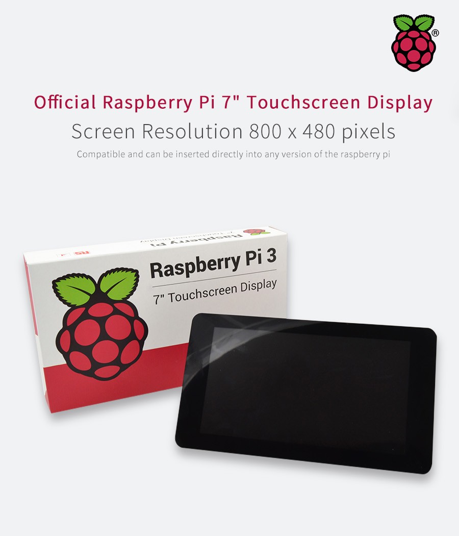 El monitor de pantalla táctil de 7 "para Raspberry Pi brinda a los usuarios la capacidad de crear proyectos integrados" todo en uno ", como tabletas, sistemas de información y entretenimiento y proyectos integrados. La pantalla de 800 x 480 se conecta a través de una placa adaptadora que maneja la conversión de energía y señal. Solo se requieren dos conexiones a la Pi: energía del puerto GPIO de Pi y un cable de cinta que se conecta al puerto DSI presente en todas las Raspberry Pi. Los controladores de pantalla táctil con soporte para toque de 10 dedos y un teclado en pantalla se integrarán en el El último sistema operativo Raspbian para una funcionalidad completa sin un teclado o mouse físico.